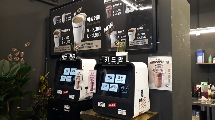 사실 생각해보면 바리스타 혼자 주문 받고 음료 제조하고 결제 받는 시스템으로 돌아가는 테이크아웃을 주력으로 하는 체인점은 많이 있는데요. 그곳에서 얼마나 소비자가를 높게 책정하고 있는지 알 수 있는 대목입니다. 오히려 지금 이 커피 전문점은 초기에 결제 기계를 들여야함은 물론 as 등의 수선 관리비 등을 생각하면 주변의 다른 체인점들의 가격이 더 낮아져야 한다고 생각합니다.