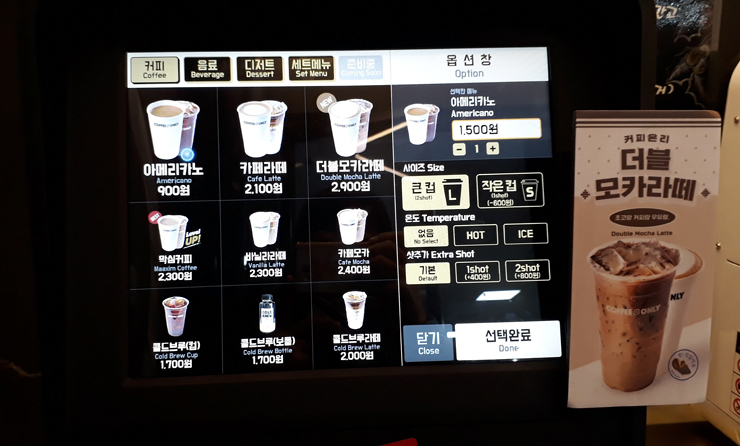 컵사이즈, 온도, 샷 추가까지도 선택이 가능합니다.