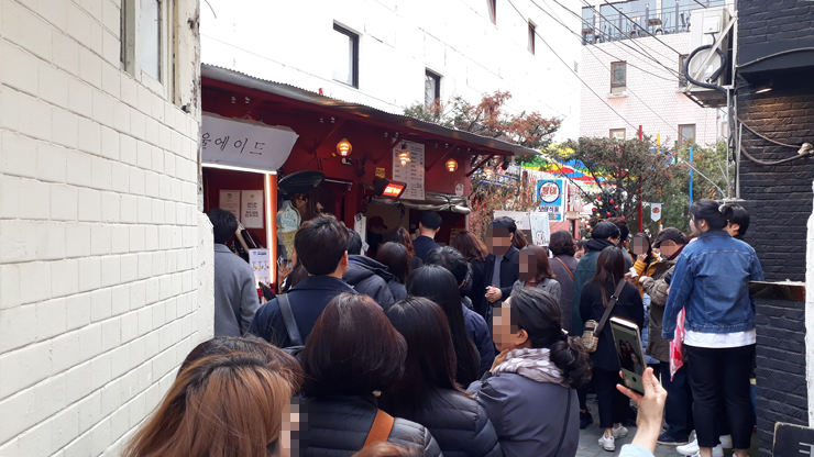 좁은 골목에 많은 사람들이 줄을 서있었습니다. 이 줄이 전부 쌀호떡을 먹기위해 기다리는 줄이라니!!! 그야말로 대박이었어요.