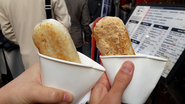 노릇하게 구워진 꿀호떡과 인절미 꿀호떡. 쌀호떡이라고 해서 처음에 생각했던 상상속의 쌀호떡은 밀가루 대신 쌀가루를 묽게 반죽해서 호떡을 구운거라 기대했는데 결과물은 어묵 모양의 떡이라니...ㅋㅋㅋ
