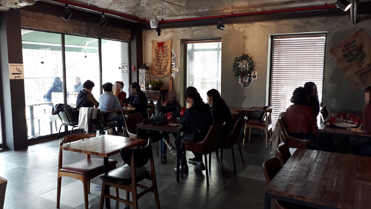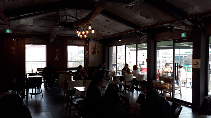 밖엔 흡연자들을 위한 테라스 자리도 있었는데 날이 많이 풀려서 그런지 많은 분들이 밖에 자리를 잡고 있었습니다.