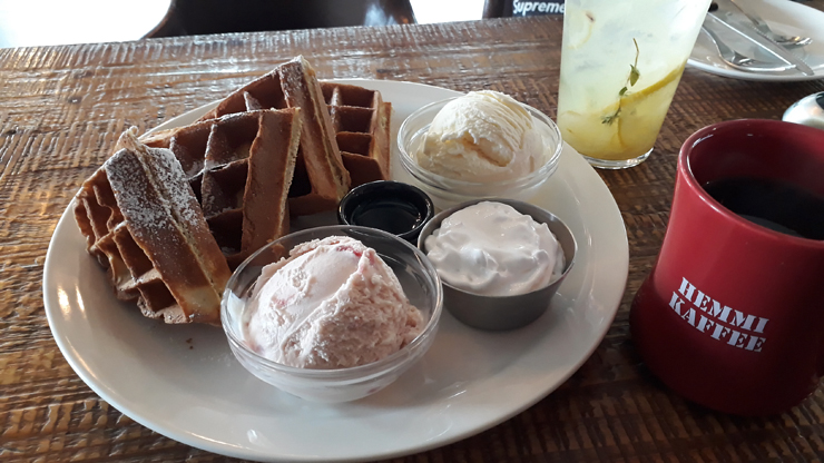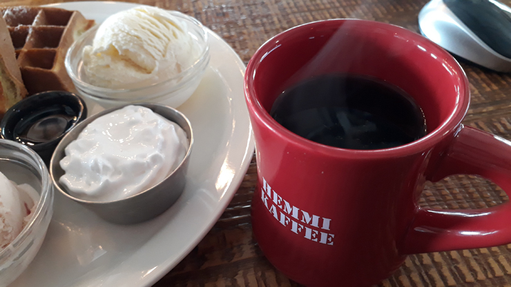 아이스크림 와플과 핫 아메리카노! 누군가는 얼죽아(얼어 죽어도 아이스아메리카노)라는데 저는 그런 내공이 못되옵니다. 또르륵.