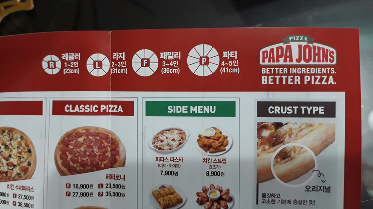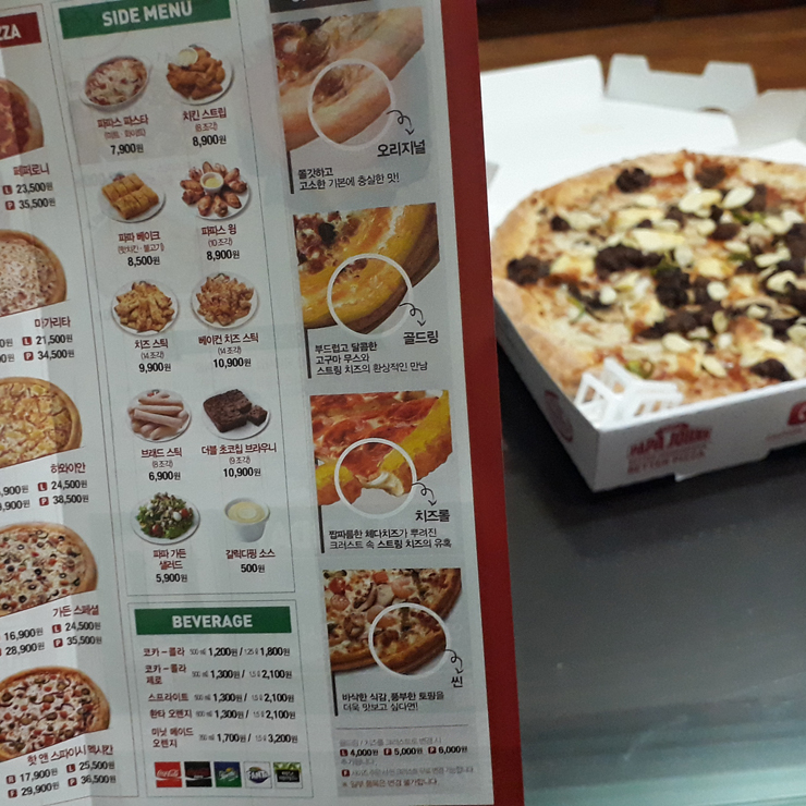 예전에 상동에 있는 파파존스에서 몇 번 배달을 왔었는데 배달 직원이 불친절해서 빈정이 상하는 바람에 몇 년동안이나 이용하지 않았던 것 같아요. 그러다가 집에 전단지와 쿠폰이 붙어있길래 맘이 흔들렸습니다.