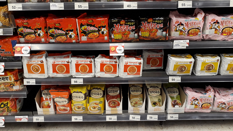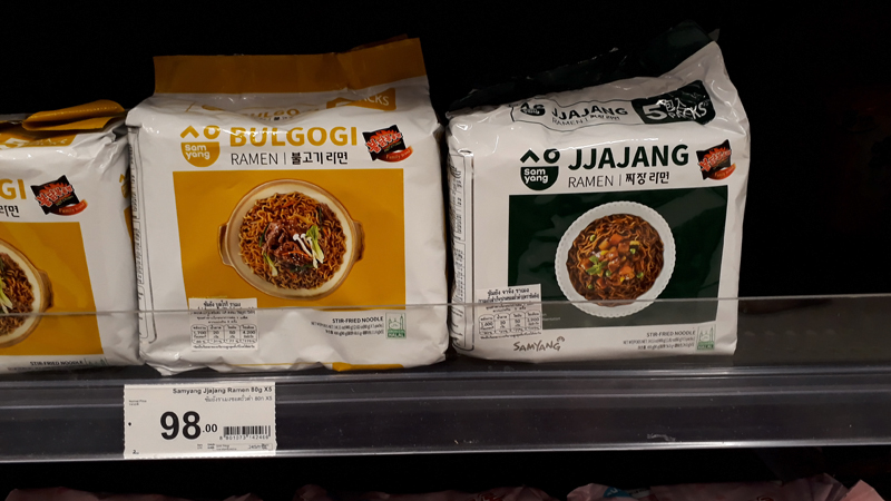 심플한 디자인이 뭔가 정갈할 것만 같은 비주얼입니다. 푸켓에는 불고기 라면, 짜장 라면, 김치 라면, 떡볶이 라면 이렇게 4종류의 라면이 들어와 있습니다. 삼양에서 나온 불닭볶음면이 태국 전역에서 인기몰이를 하면서 힘을 받은 삼양이 다른 라면도 조금씩 수출하고 있습니다. 가격은 번들에 98밧으로 상당히 저렴한 편. 1개의 번들에는 라면 5봉지가 들어있습니다.