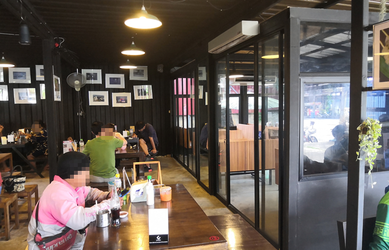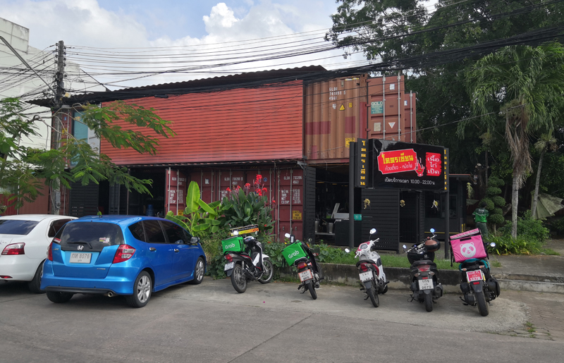 먼저 컨테이너 느낌의 건축물이 추가되었습니다. 간판도 새로 교체되어 이제 제법 그럴듯한 식당의 모습을 갖추게 되었어요. 푸켓의 유명한 배달 대행 업체인 그랩과 푸드판다 오토바이도 보입니다. 배달 가맹도 시작한 것 같습니다.