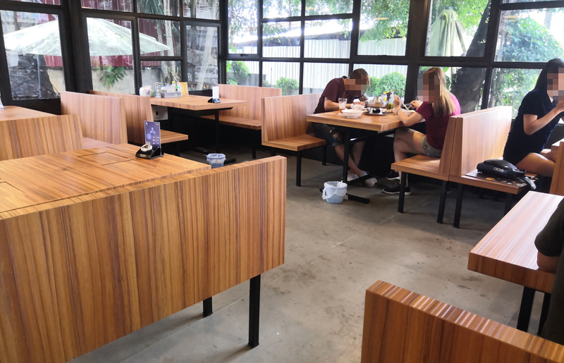 3면이 유리창으로 되어 있어서 바깥 나무들도 볼 수 있고 답답해 보이지 않습니다. 저희도 맨 처음엔 에어컨 룸에 앉았다가 너무 추워서 메인 홀로 자리를 옮겼어요.