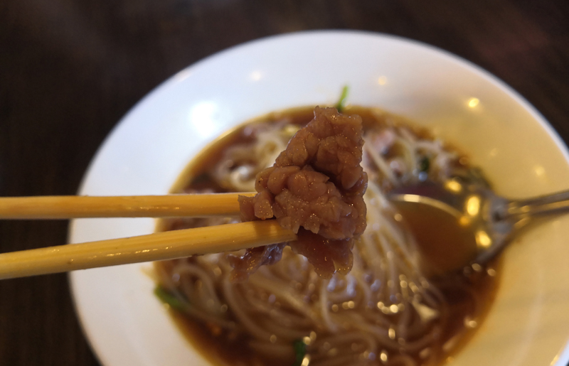 원래 소고기 쌀국수 고기는 큐브 모양의 깍둑 썰기가 된 고기를 푹 삶아낸 것인데 이 고기는 오래 삶아진 고기가 아닌 그냥 익힌 슬라이스 된 고기입니다.