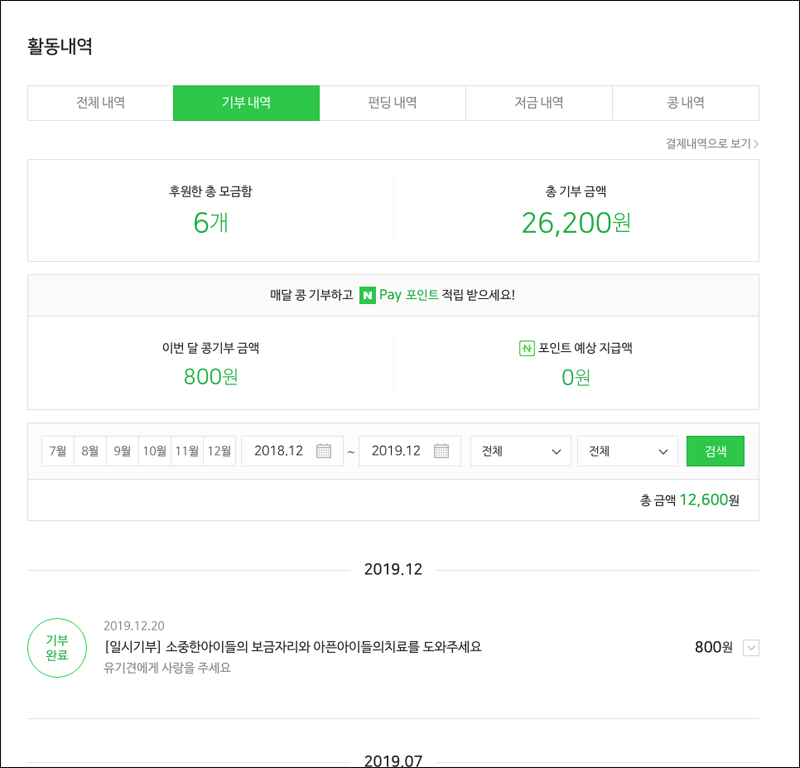 5년여 전부터 블로그를 운영하고 있었고 종종 지식in 활동도 해왔기 때문에 모아둔 콩들이 제법 있었습니다. 생각이 날 때마다 기부를 해왔어요.