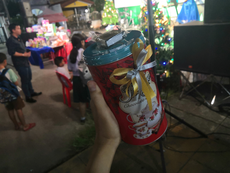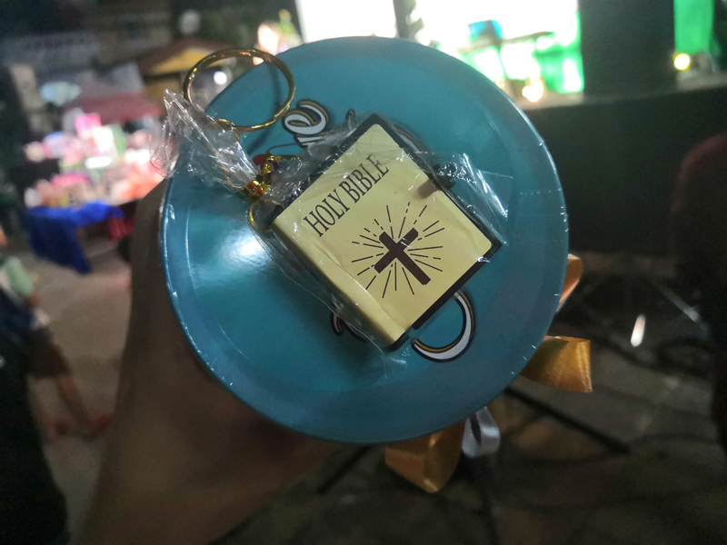 막바지가 흘러 저희의 공연 후. 교회측으로부터 선물을 받았어요! 과자와 키링.