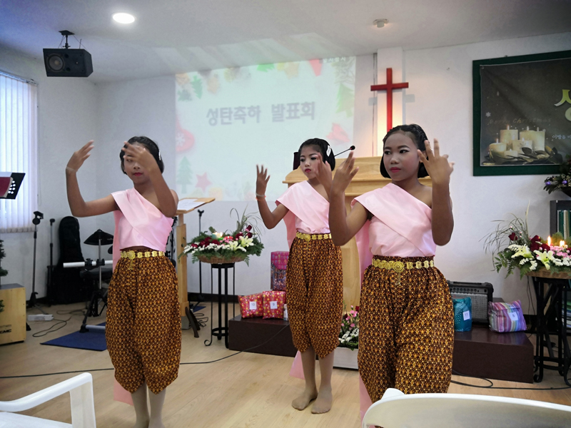 지난 성탄주일 예배시간에 교회에서 태국 교회 교인분들이 와서 특송과 태국 전통춤 공연을 해주셨습니다.
