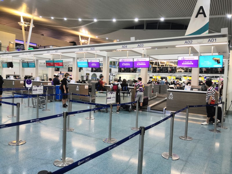 홍콩 공항에 사람이 많이 줄어서인지 때마침 양 사이드에 보수 공사가 진행 중이었습니다.