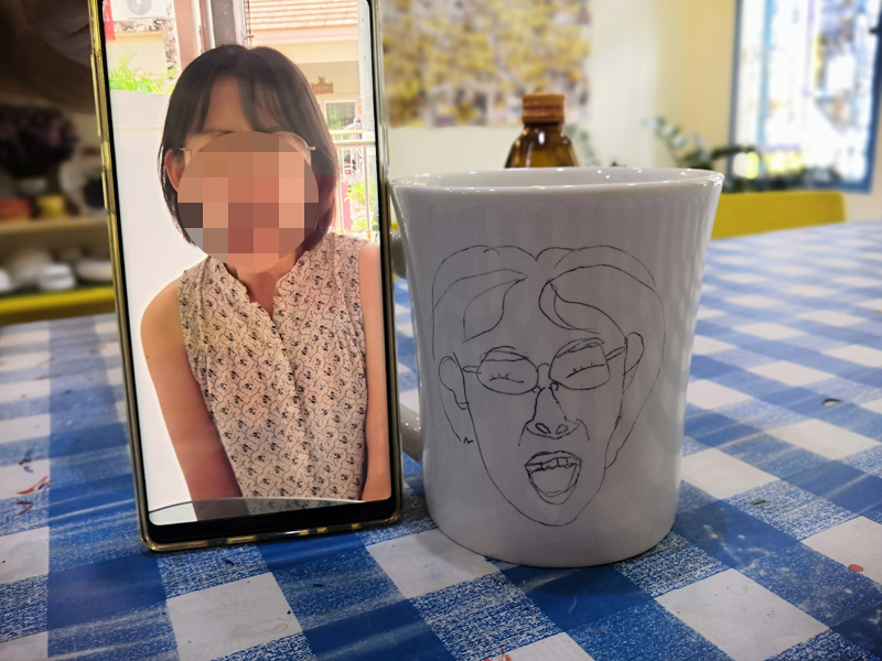 열심히 1시간 넘게 그린 저희 컵이에요! 약 35~40여분 굽는 작업을 해야한대서 기다렸다가 바로 받아왔습니다. 다행이 저도 그렇고 신랑도 그렇고 서로 그려준 컵을 맘에 들어 했어요. ㅋㅋㅋ 개인적으로 제 컵은 기분이 안좋을 때 이 컵에 커피를 담아 마시면 저절로 웃음이 날 것 같은 비주얼이라 ㅋㅋㅋ 너무 맘에 듭니다. 마치 "이 구역의 미친*은 나다!!!"라고 외치는 것 같지 않나요? ㅋㅋ 이 컵은 깨지는 그날까지 잘 사용할거에요!