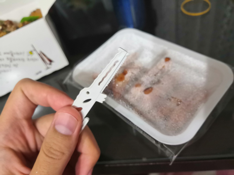 센스있게 포장을 뜯는 플라스틱칼이 동봉되어 있었는데 일회용으로 사용하지 않고 나중에 다시 사용할 수 있겠어요. 이런 일회용품은 사실 좋아하지 않아서 나무젓가락이나 포크는 빼달라고 했는데 요건 선택권이 없나봅니다.