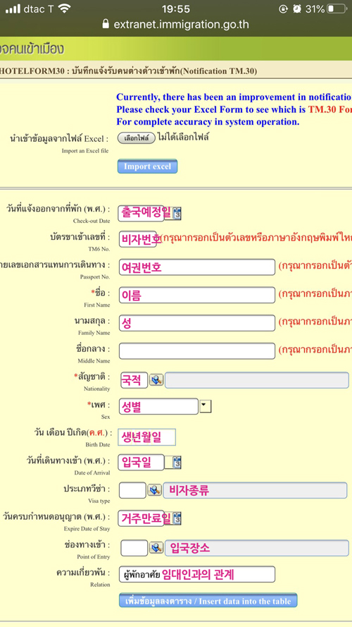 태국에 거주하려면 꼭 해야하는 신고 TM30 : 24시간(이내) 거주자 등록