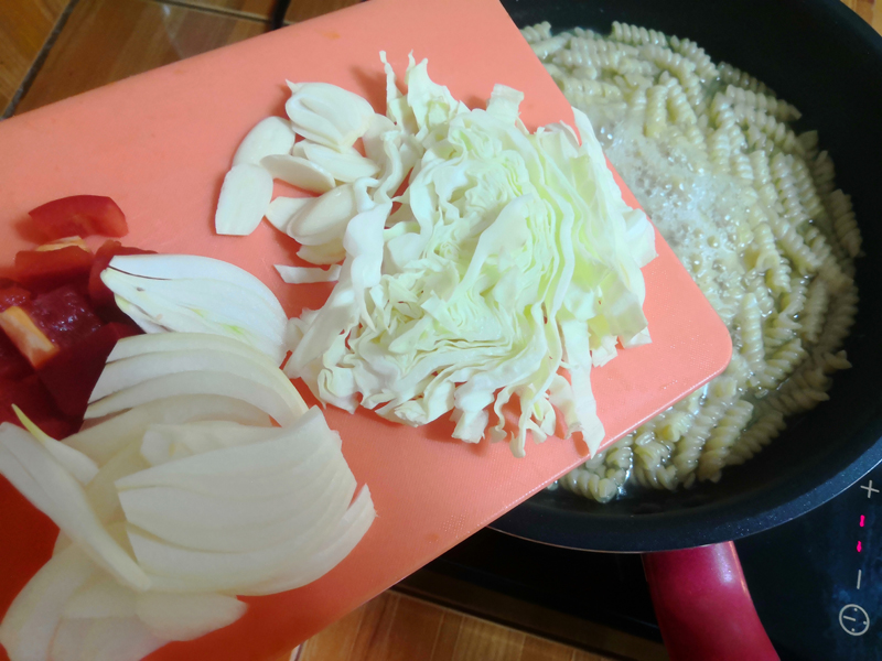 마늘, 파프리카, 양파, 양배추(냉장고 속 야채로 대체 가능)