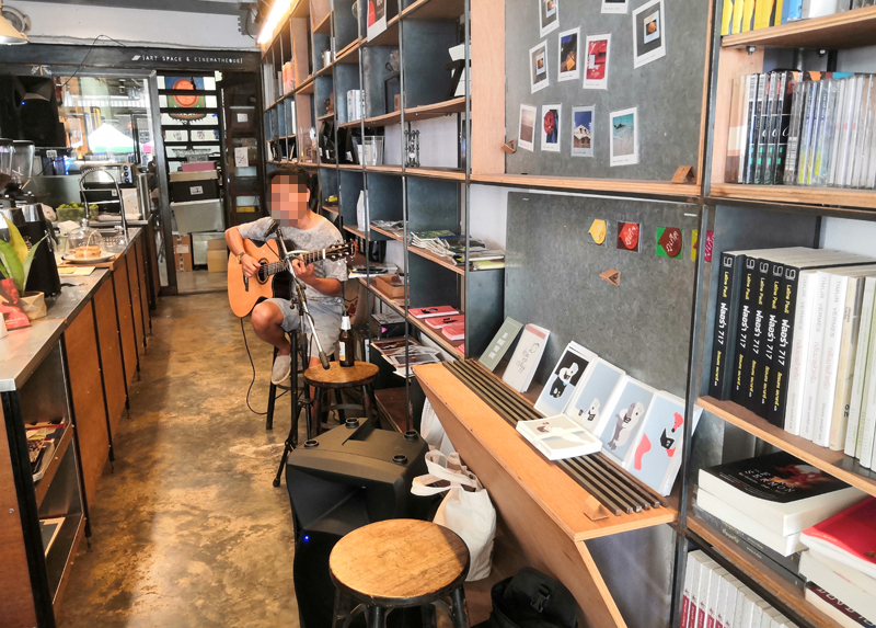 좁지만 개미굴처럼 길게 들어갈 수 있는 실내에는 기타 라이브를 들려주는 연주자가 있어서 bar가 아님에도 불구하고 커피를 마시면서 라이브를 즐길 수 있습니다.