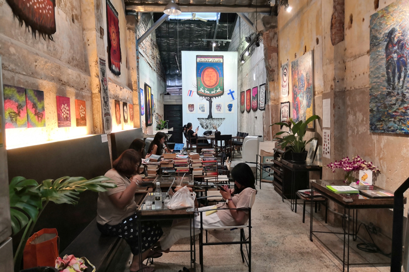 태국어 간판을 보면 หนังสือ라고 되어 있는데 이는 '낭쓰'라고 읽으며, '책'이라는 의미에요. 점원에게 물어보니 대여나 판매는 하지 않고 카페 내에서는 무료로 어느 책이든지 읽을 수 있다고 합니다. 아, 그래서 북헤미안이었구나... 싶었습니다.