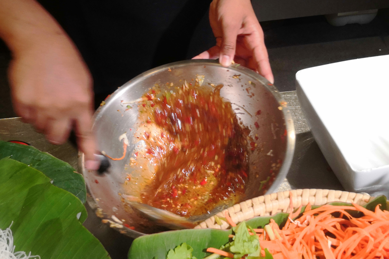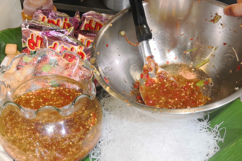 거기에 남프릭 소스를 넣고 쉐킷쉐킷! 이 타이밍에 얼마나 맵게 할건지 매운 정도를 항상 물어봅니다.