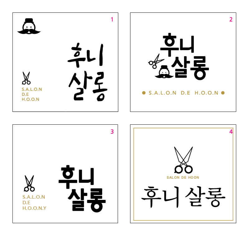 고객님이 원했던 서체는 1번. 사실 개인적으로 저런 캘리그라피는 군더더기 없이 딱 서체 하나만 두고 나머지 요소는 과감하게 없애는게 가장 깔끔하지만 가위도 넣고싶어 하시고 수염도 넣고싶어 하시고 영문도... ㅎㅎㅎㅎ;;;
