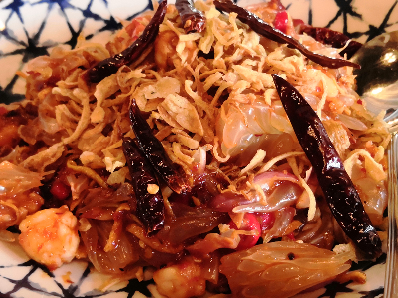 팟타이, 코코넛 커리와 누들, 포멜로 샐러드 그리고 밥.