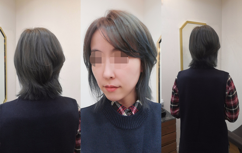그런데 쌤이 과감하게 훨씬 더 샤기한 컷으로 잘라주셨어요! 머리가 나풀나풀 거릴 정도로요. 막상 이렇게 자르니까 머리는 더 가볍고 스타일링도 쉬워져서 뻗치는 것도 거의 없고, 오히려 머리 숱은 더 많아 보이더라구요. 머리숱은 많은데 샤기컷을 쳐서 가벼워보인다는 착시 효과(?)라고 해야하나요?