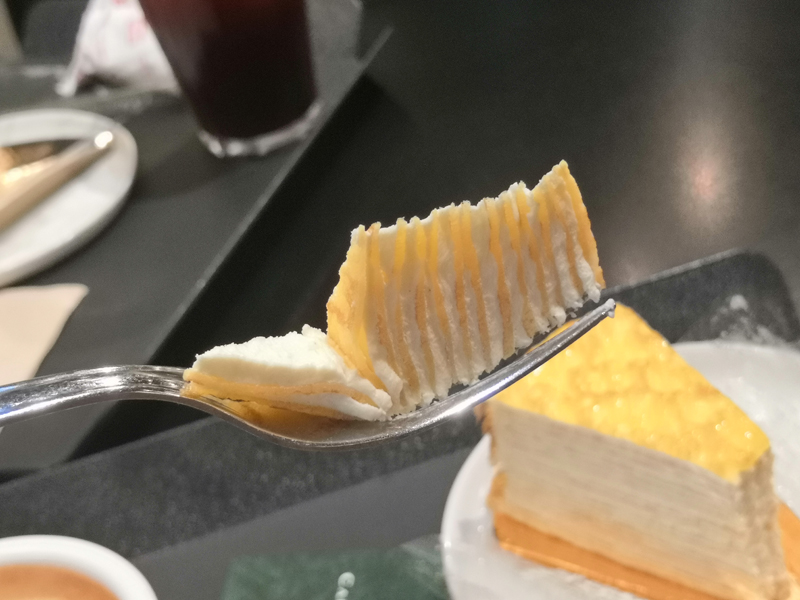약 15층의 크레이프에 생크림이 적당히 샌딩되어 느끼하지 않으면서도 담백한 생크림 케이크 맛을 즐길 수 있습니다. 일반 생크림 케익에 비해 씹는 즐거움이 더 있는 편이라고 해야할까요? ㅎㅎ 굳이 아메리카노와 먹지 않아도 될만큼 깔끔한 맛입니다. 역시 시누이의 선택은 틀리지 않았네요!