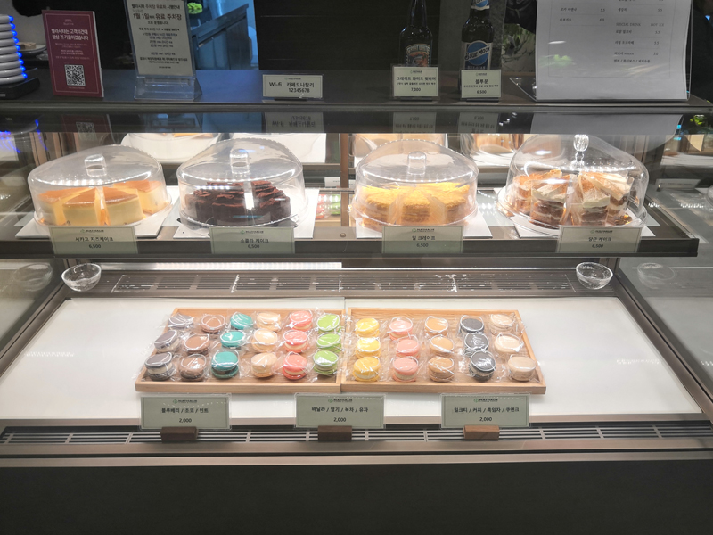 커피엔 반드시 ㅋㅋ 케익을 먹어줘야합니다. 쇼콜라 케이크도 먹고 싶고 마카롱도 당겼지만 여긴 단연 '밀 프레이프 케익'을 먹어줘야 한다고 해서 팔랑팔랑 밀 크레이프(6,500원)를 주문했어요. ㅋㅋㅋ 케익은 가격이 좀 나가는 편인 것 같아요.