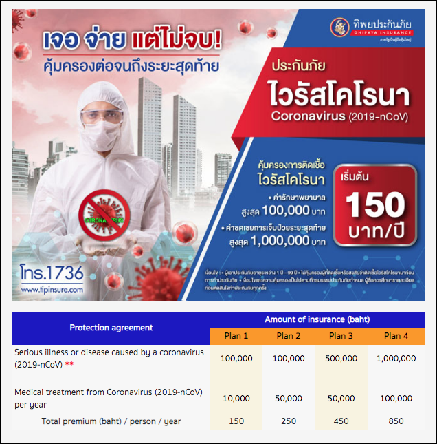 구글에 'Dhipaya insurance'를 검색하셔서 홈페이지에 들어가시면, <Our products - Health and accident insurance - Corona Virus insurance>라는 카테고리를 타고 들어가실 수 있어요.