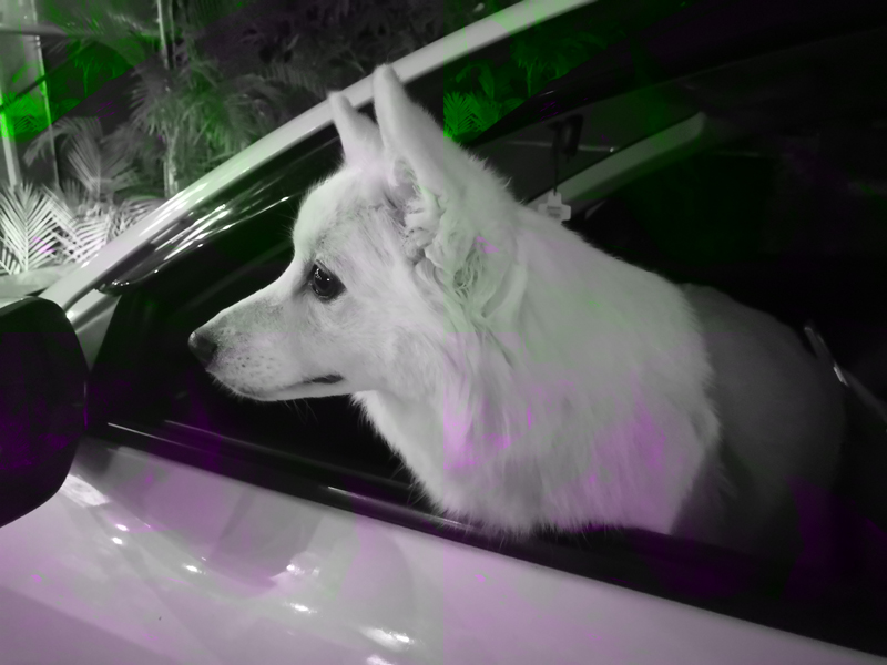 마스크를 아껴야하는지라 저희는 대표로 제가 마스크와 라텍스 장갑을 끼고 주문을 하고 신랑과 달둥이는 차에서 구경 중입니다. 뭔가 맛있는 냄새를 맡은 달둥이는 허공에 킁킁거리는 중. ㅋㅋㅋ