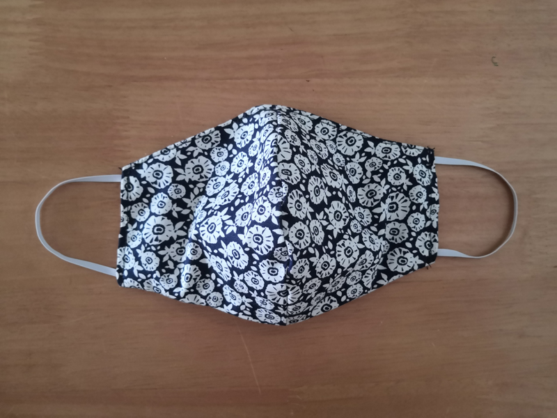 요렇게 천 2겹을 덧대어 만든 나름 입체형 천마스크입니다. 안에 필터를 붙여서 사용하면 아주 괜찮을 것 같습니다. 일반 마스크보다 얼굴을 더 많이 가려줘서 신랑은 세수를 안하고 밖에 나가도 되겠다며. ㅋㅋㅋ 심지어 천에 프린트된 패턴도 맘에 듭니다. ㅎㅎㅎ
