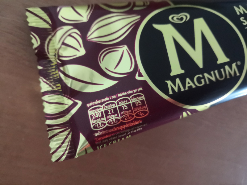 보통 이런 막대 아이스크림은 10~15밧 사이의 가격대인데 매그넘 브랜드는 40밧이 넘습니다. 신랑은 비싼 아이스크림을 사왔다고 처음엔 핀잔을 주었지만 한 입 먹어보고는 "우와! 그 네슬레꺼보다 이게 훨씬 고급진 맛이네! 훨씬 맛있다"라며 ㅋㅋㅋ 아주 만족해했답니다.