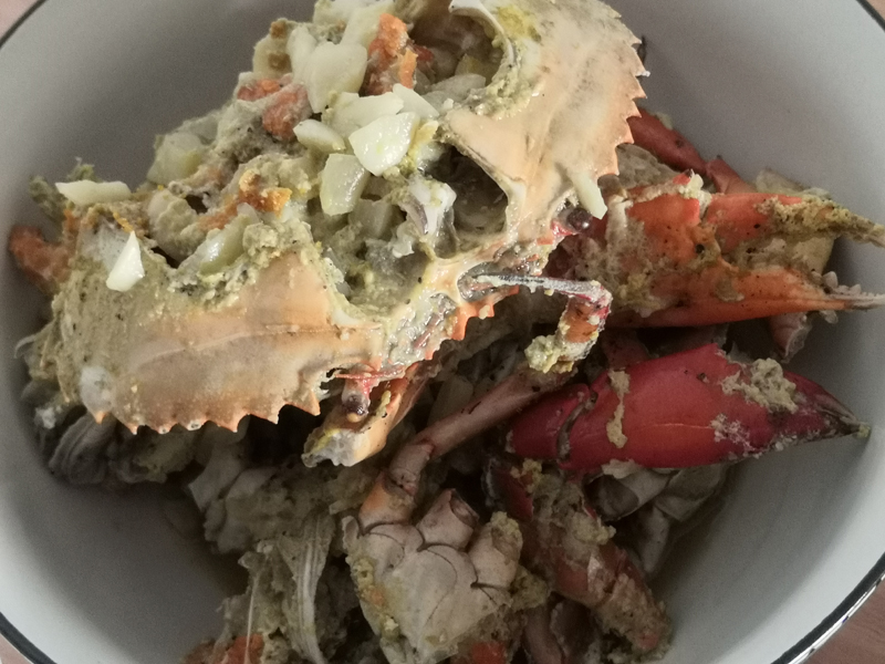 에라, 모르겠다! 일단 무조건 냉동고로 집어 넣었지요. 그리곤 애써 외면... 이렇게 오랜 시간이 흘렀고... 모른척하던 신랑이 "저 머드 크랩 이제 못먹는거 아냐?"라며 던진 한 마디에 결국 게녀석들을 꺼내게 되었습니다. 또르륵...