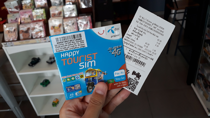 저는 49밧짜리 dtac(디텍)유심칩을 구입했습니다. 요 유심칩에는 개통일로부터 30일 동안 사용이 가능한 15밧의 통화 크레딧이 별도로 서비스된 카드입니다. 하지만 이렇게 충전해서 사용하는 선불 유심칩의 경우 우리나라도 마찬가지이지만 통화료가 비싸기 때문에 15밧은 큰 의미없는 금액일 수 있습니다.