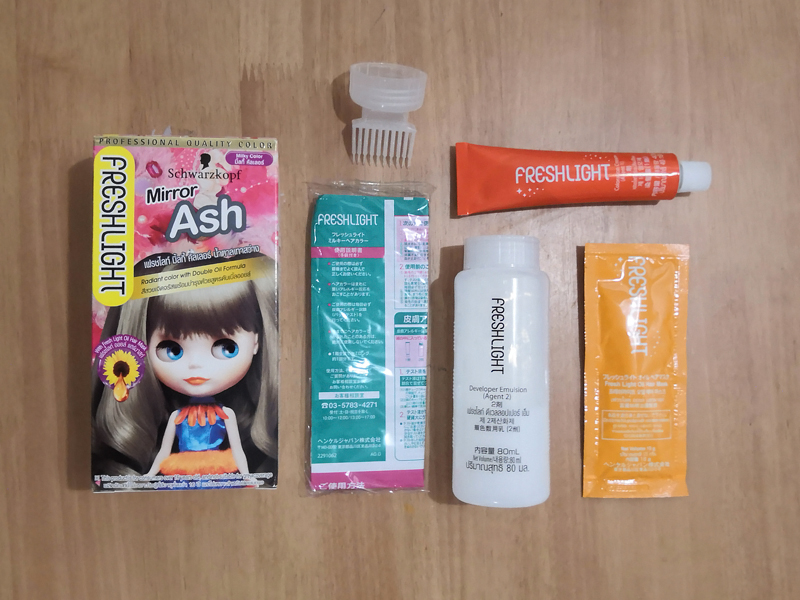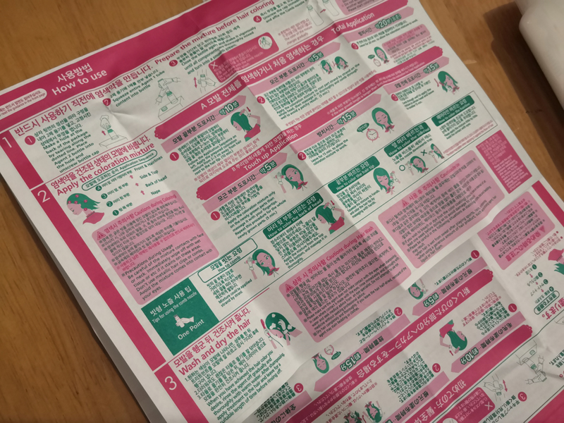 염색하지 않은 검은색 헤어에 염색한 컬러와 탈색이 된 밝은 헤어에 염색된 컬러가 견본으로 나와있어요. 정말 이렇게 나올까? 기대 반 그리고 의심 반을 가지고 모셔온 염색약. 어떤 컬러가 나오든지 채도만 좀 낮춰지면 뭐든 괜찮다고 생각했어요. 제 머리카락에 할게 아니니까 ㅋㅋㅋ 괜찮을겁니다. ㅋㅋㅋ