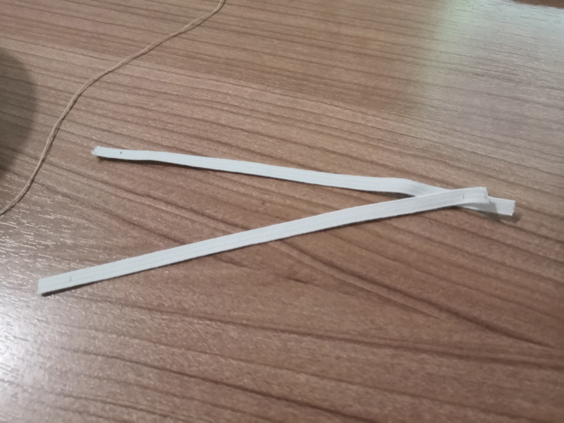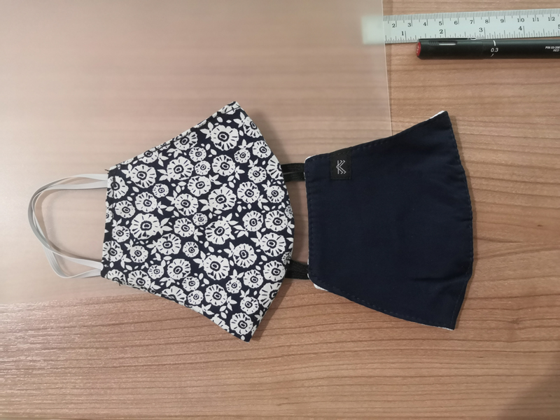 도안은 왼쪽의 마스크가 더 맞아서 왼쪽의 마스크를 디벨롭했고 거기에 필터를 끼울 수 있는 천을 덧대어 추가시키고 고무줄도 천으로 싸여진 고무줄에 기존의 마스크보다 5mm 정도 더 길게 빼주기로 했어요.