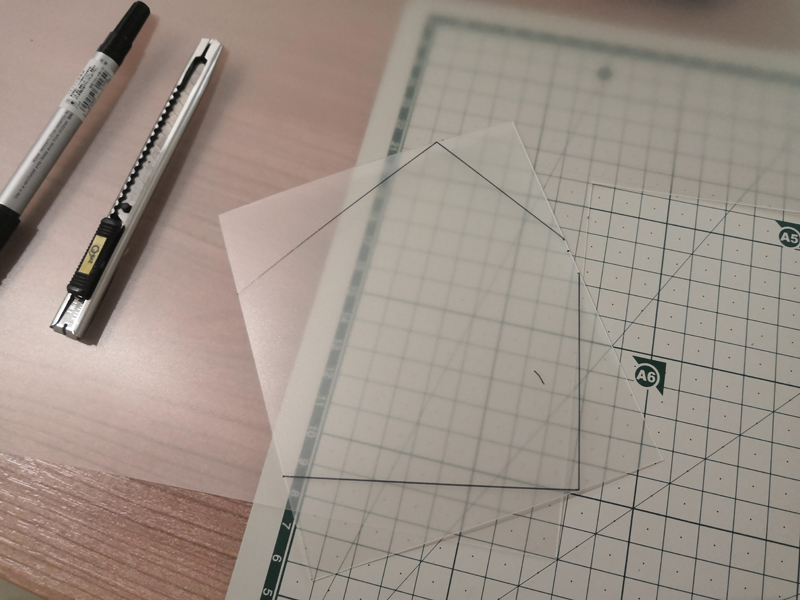 프린터기가 없다면 저처럼 집에 굴러다니는 두꺼운 종이 또는 빳빳한 책받침 등에 직접 사이즈에 맞게 네임펜으로 도안을 그려줍니다. 저희집은 프린터기가 고장나서 이렇게 직접 그려주었지요!