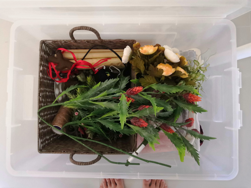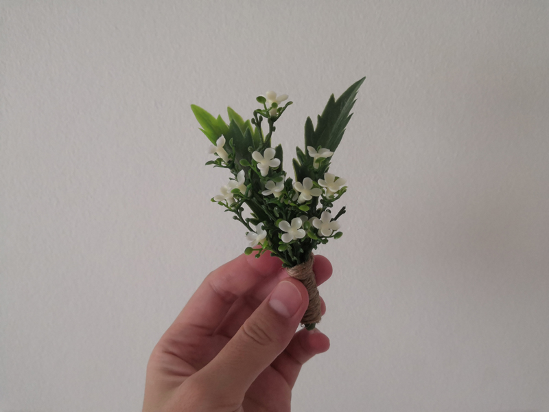 화관처럼 보이지만 달둥이꺼에요. ㅋㅋ 요즘은 화관을 많이 안하는 추세라서 저는 부케만 들기로 했어요... 는 핑계이구 만들 수 있는 재료가 집에 별로 남아있지 않았거든요. 지금 푸켓은 생활용품 파는 전문매장들이 모두 락다운 상태라서 영업을 하고 있지 않습니다. 조화나 다른 데코용품들은 구입할 수 없는 상황이에요. 아쉬운대로 집에 있는 재료들의 영혼까지 끌어다가 써야할 판.