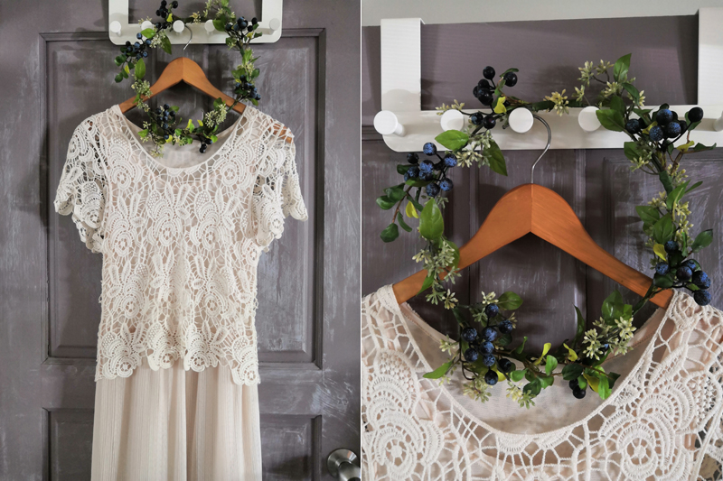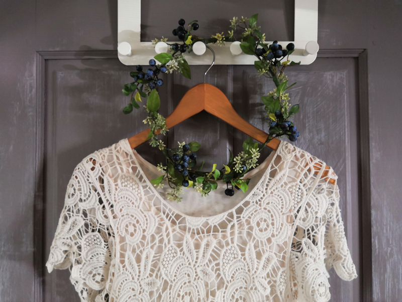 이게 제가 입을 빈티지한 드레스이고 블루베리 열매가 달린 리스는 달둥이 목에 걸어줄 꽃목걸이랍니다.