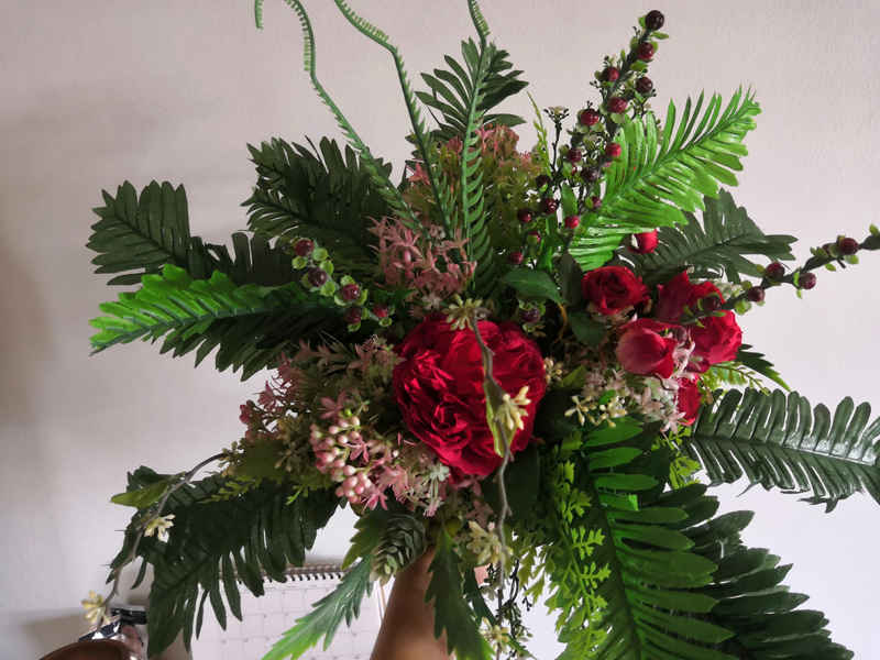 위에서 보면 이런 느낌이에요. 양 옆으로 조금 더 풍성한 스타일을 원했지만... 집에 굴러다니는 조화로 만든거라 재료가 없어서 이 정도로만 만족했어요. 흑흑.