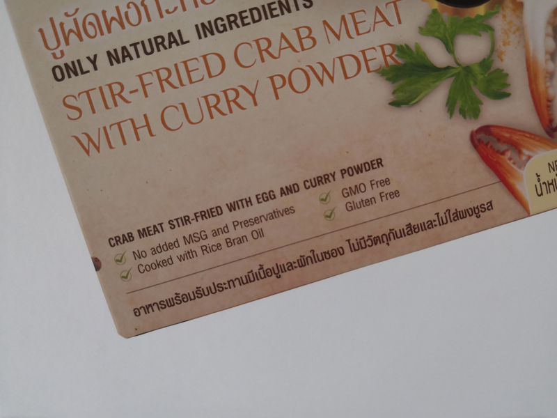 원재료 : 계란, 게살, 코코넛 추출액, 쌀눈 오일, 고추, 자색 양파, 양파, 설탕, 커리 파우더, 옥수수전분, 마늘, 소금
