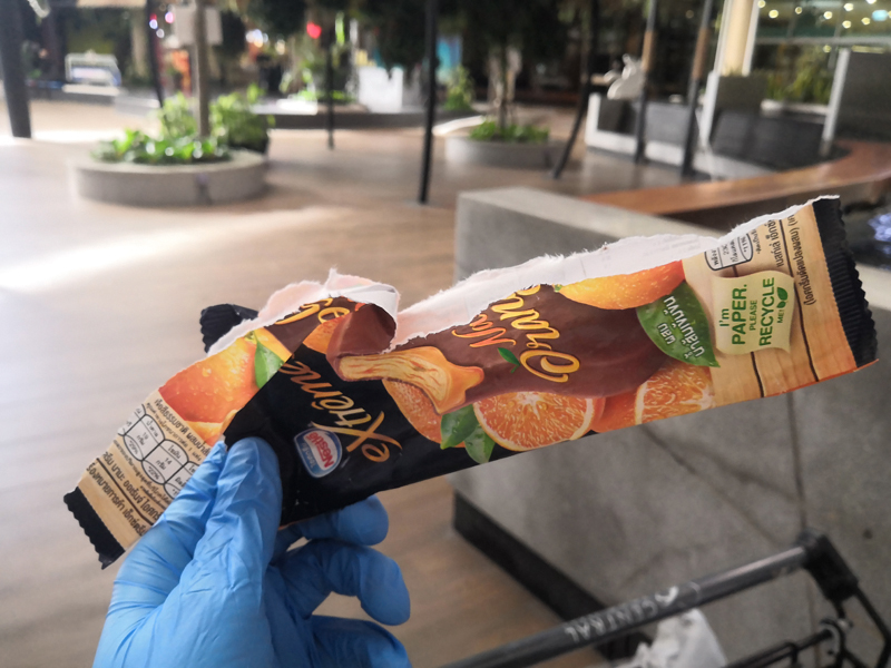 이건 오늘 찰롱 테스코에서 찍은 사진인데 망했어요! 겉에 코팅된 초콜렛이 바스라졌네요. 흐엉... 게다가 빛의 속도로 녹아버렸습니다.