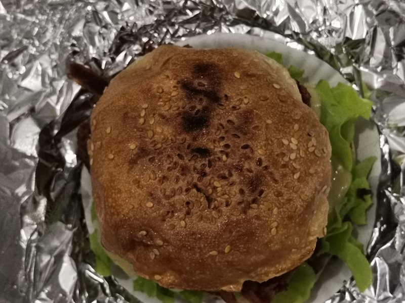겉이 부서지는 약한 버거빵이 아니라 맨질맨질하고 살짝 쫄깃한 식감의 번이 투박하게 구워져 있습니다.