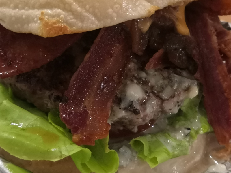 자, 그럼 이제 저의 베이컨 블루치즈 버거를 살펴보겠습니다.