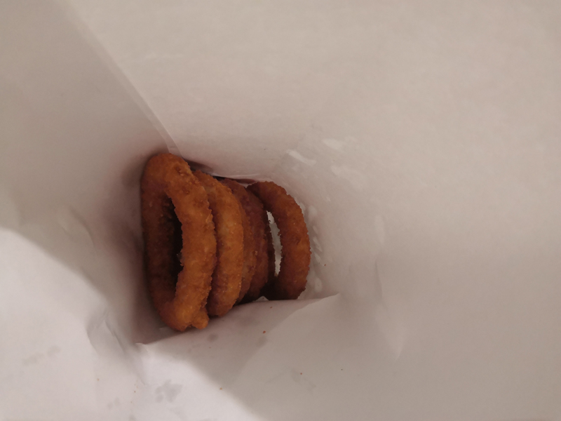 위의 토핑을 추가할 수 있는데 이건 이곳 주문 이력이 없는 저희에겐 모험인지라 일단 오리지널 버전으로 맛을 보기로 했습니다. 감자 튀김이나 어니언 튀김은 별도로 추가 주문을 해야하는데 저희는 어니언 튀김을 주문했습니다.
