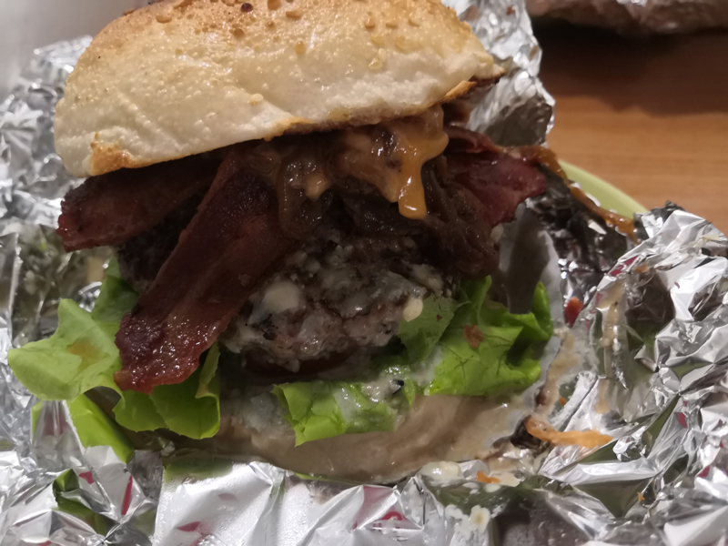 자, 그럼 이제 저의 베이컨 블루치즈 버거를 살펴보겠습니다.
