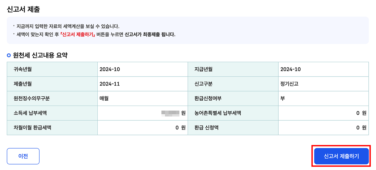 <신고서 제출하기>를 누르면 신고는 완료된다.