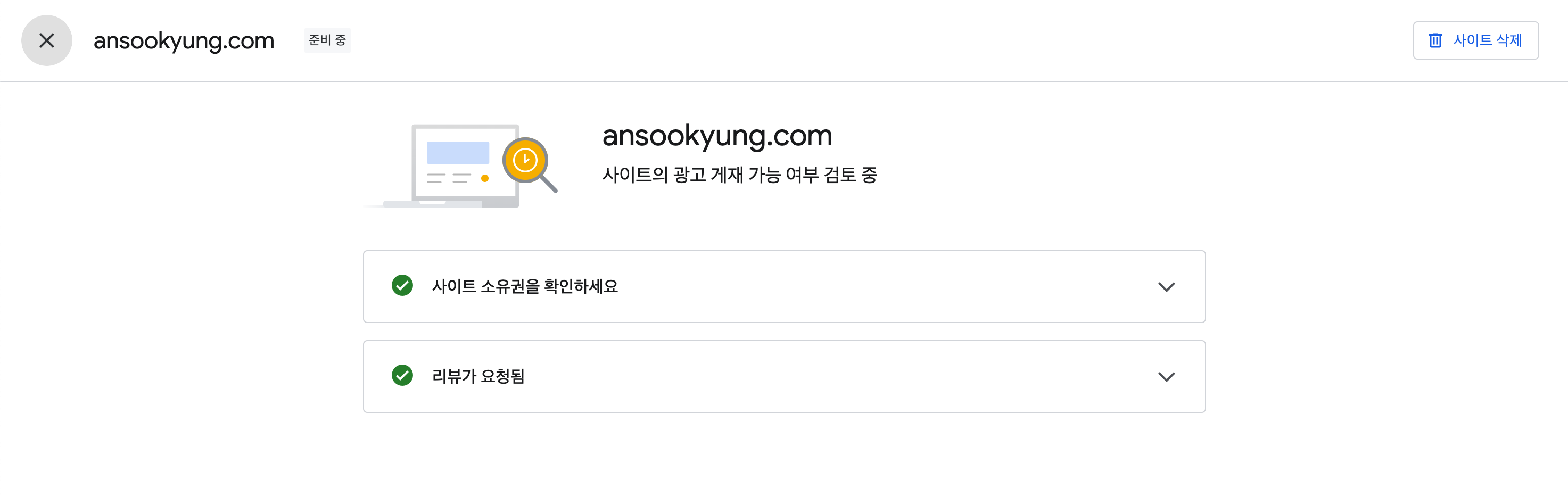 그리고 사이트 (정보)관리도 확인!