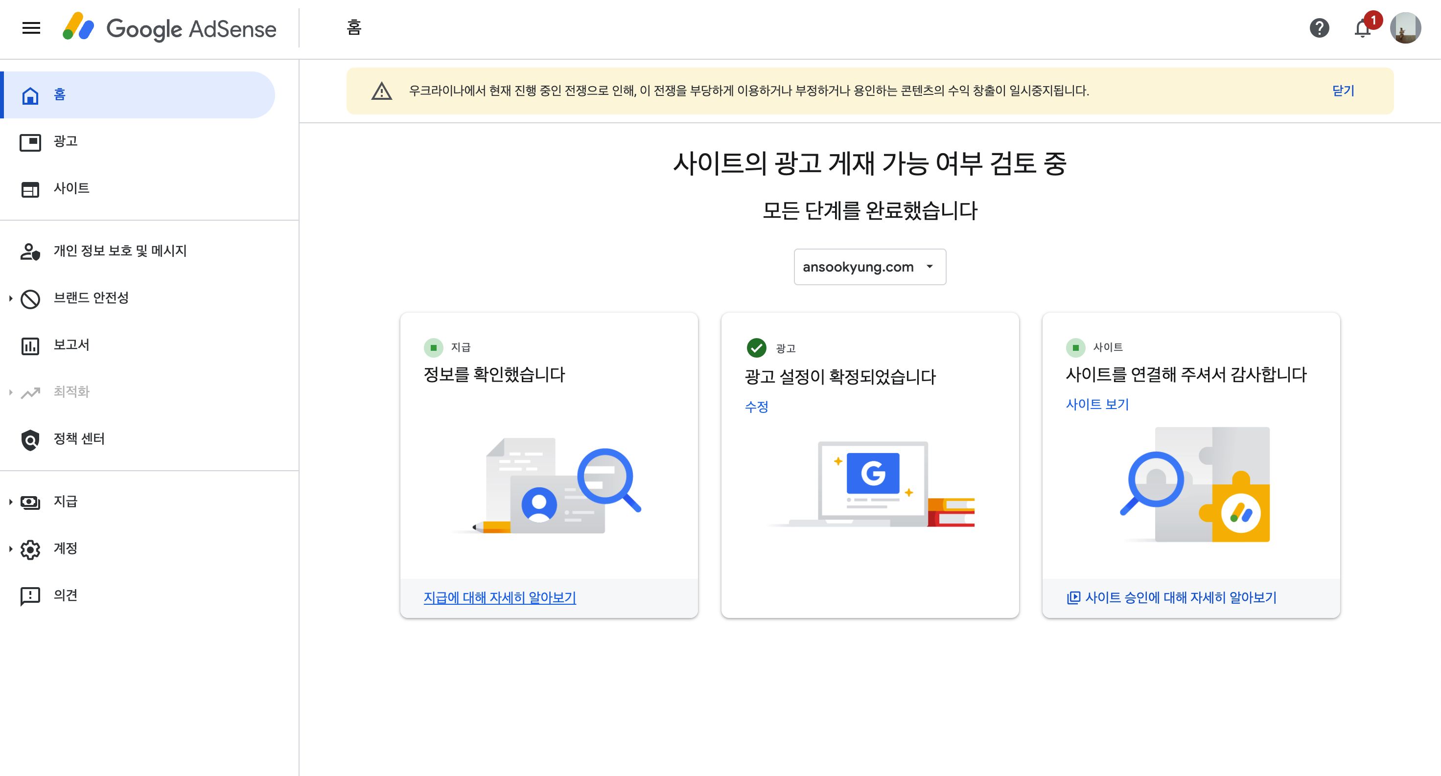 이후 눈 앞에 닥친 일들이 더 급해서 블로그를 방치해두다가 이제서야 다시 블로그를 부활시키고 애드센스 승인도 다시 받게 되었죠.
