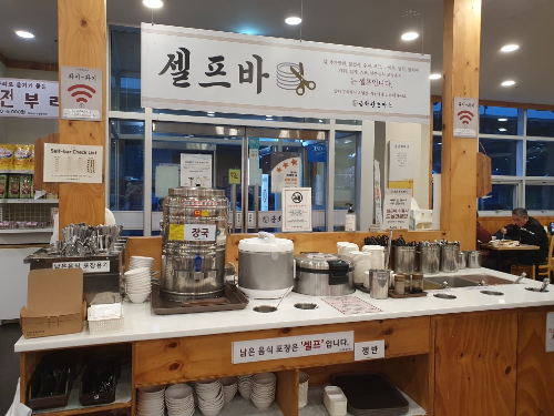 이곳의 좋은 점은 바로 장국과 밥과 스프, 그리고 요 3가지 반찬을 무한리필해서 먹을 수 있다는 거에요.