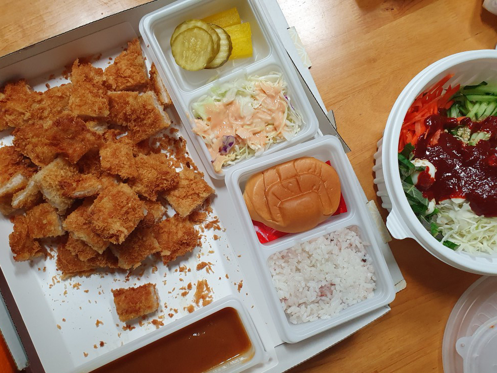 그렇게 포장해온 대왕돈까스와 쫄면 되겠습니다.